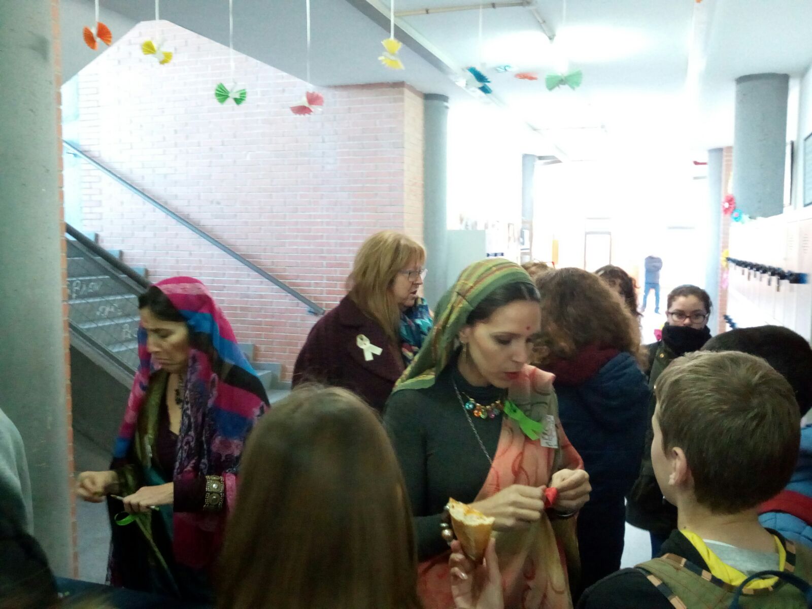 Para concienciar a nuestros alumnos de tan importante valor y contribuir de paso al fomento de la lectura, Rosa y Lucía se han vuelto a disfrazar de indias, e instalaron frente a la Biblioteca, un panel con poemas de temática pacifista. En el centro del mismo, se podía observar en gran tamaño las letras de la palabra «PAZ», y en cada una de ellas, nuestros alumnos fueron escribiendo sus pequeños propósitos para alcanzar siempre este valor.