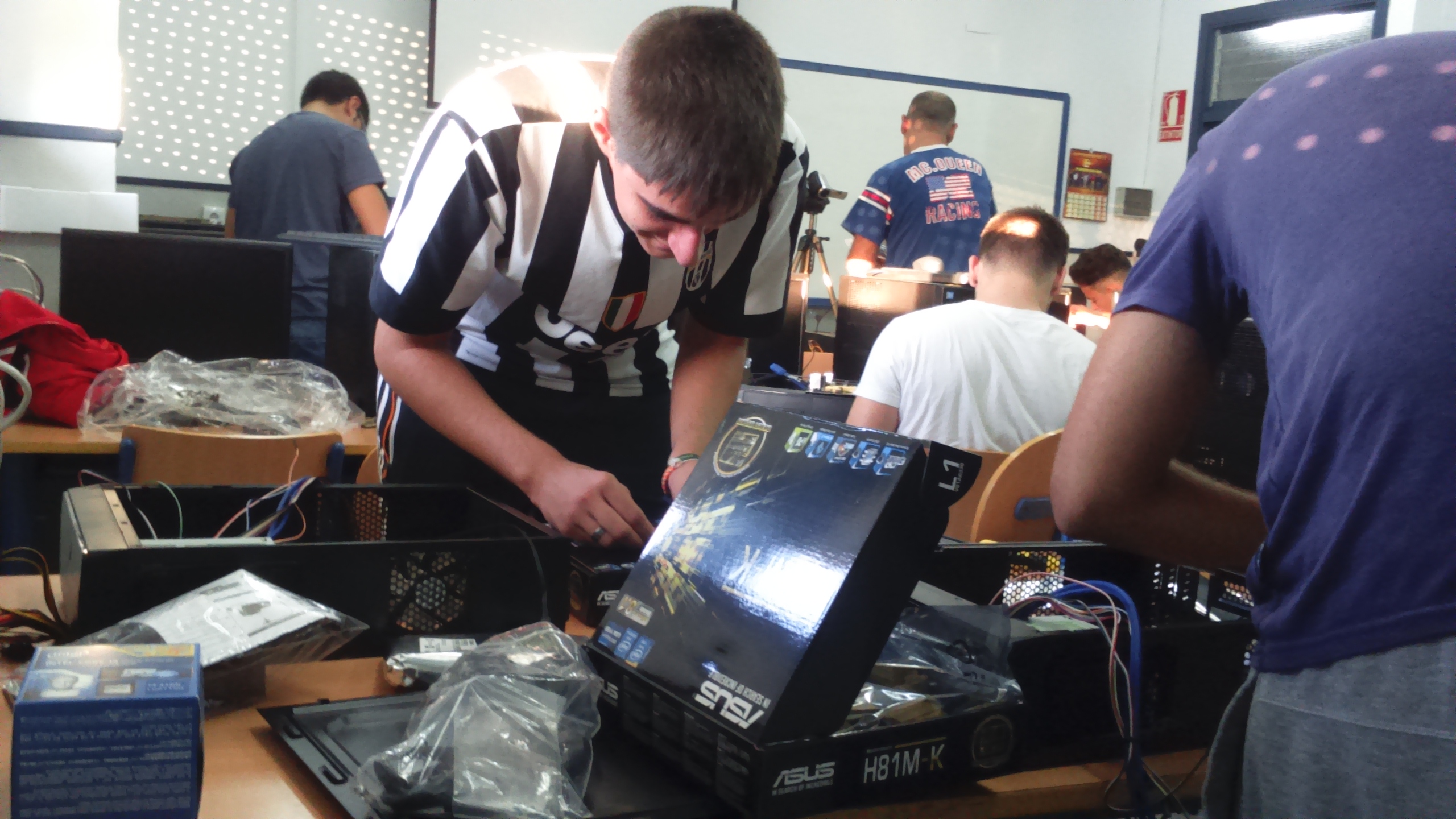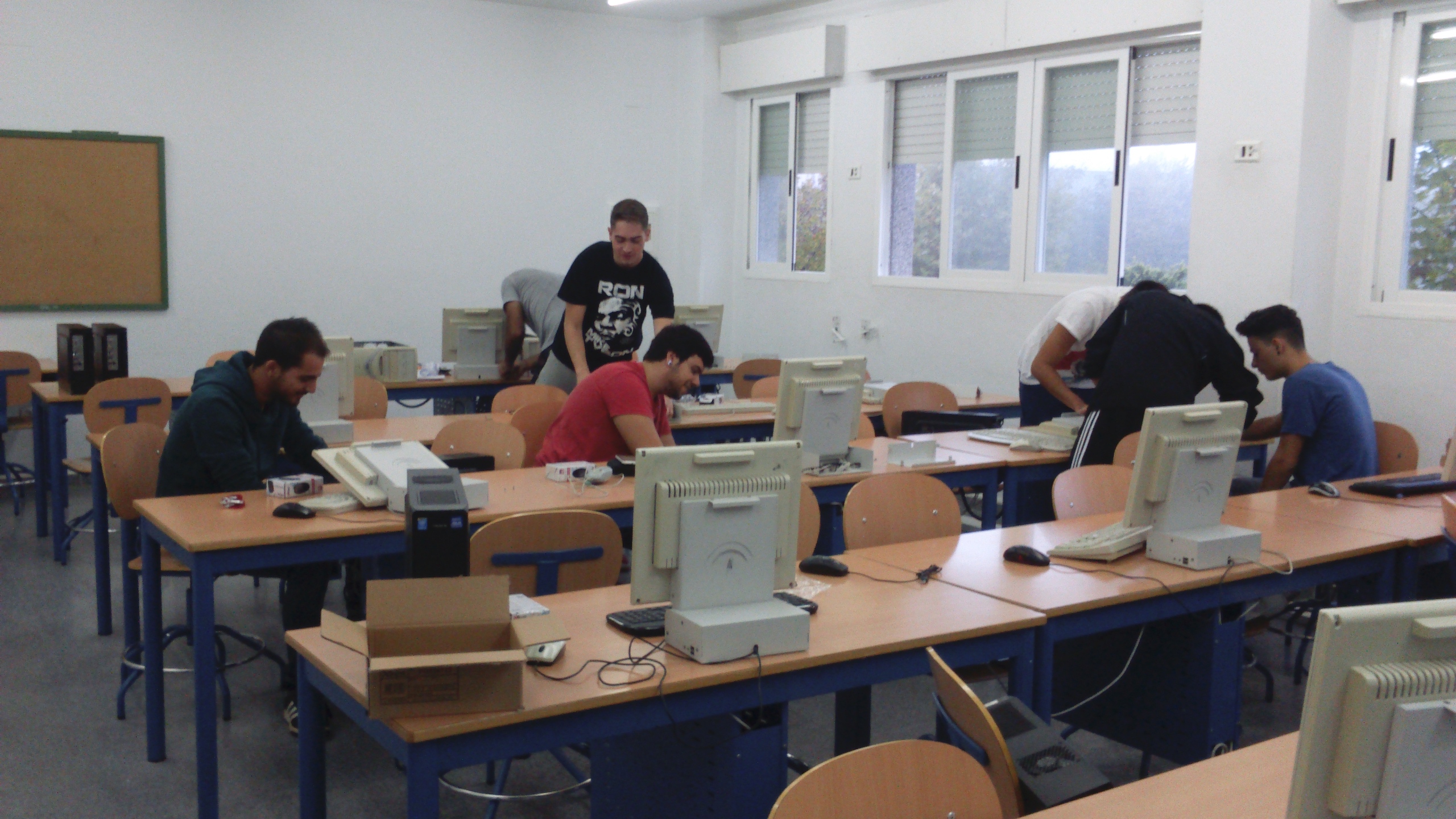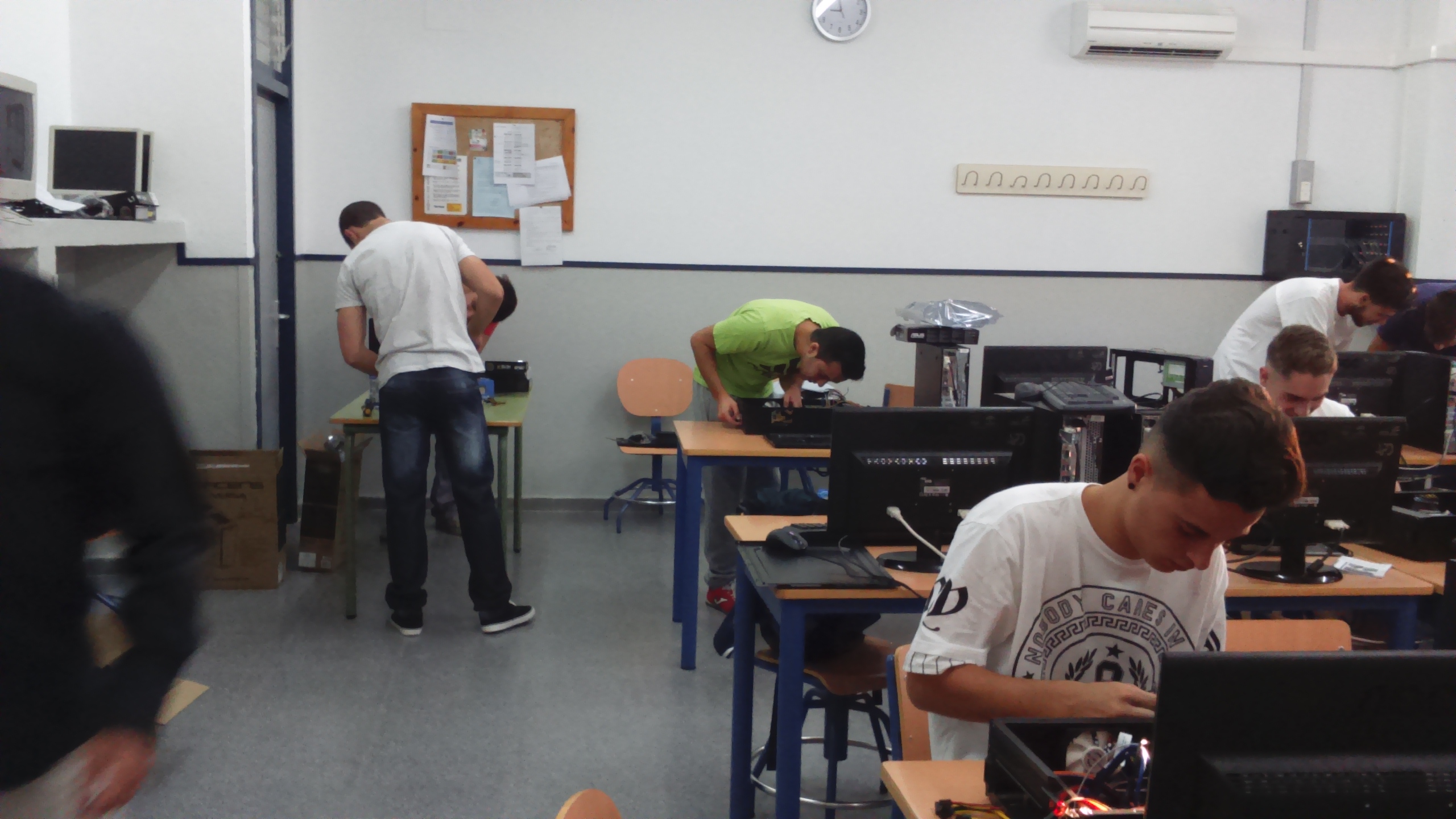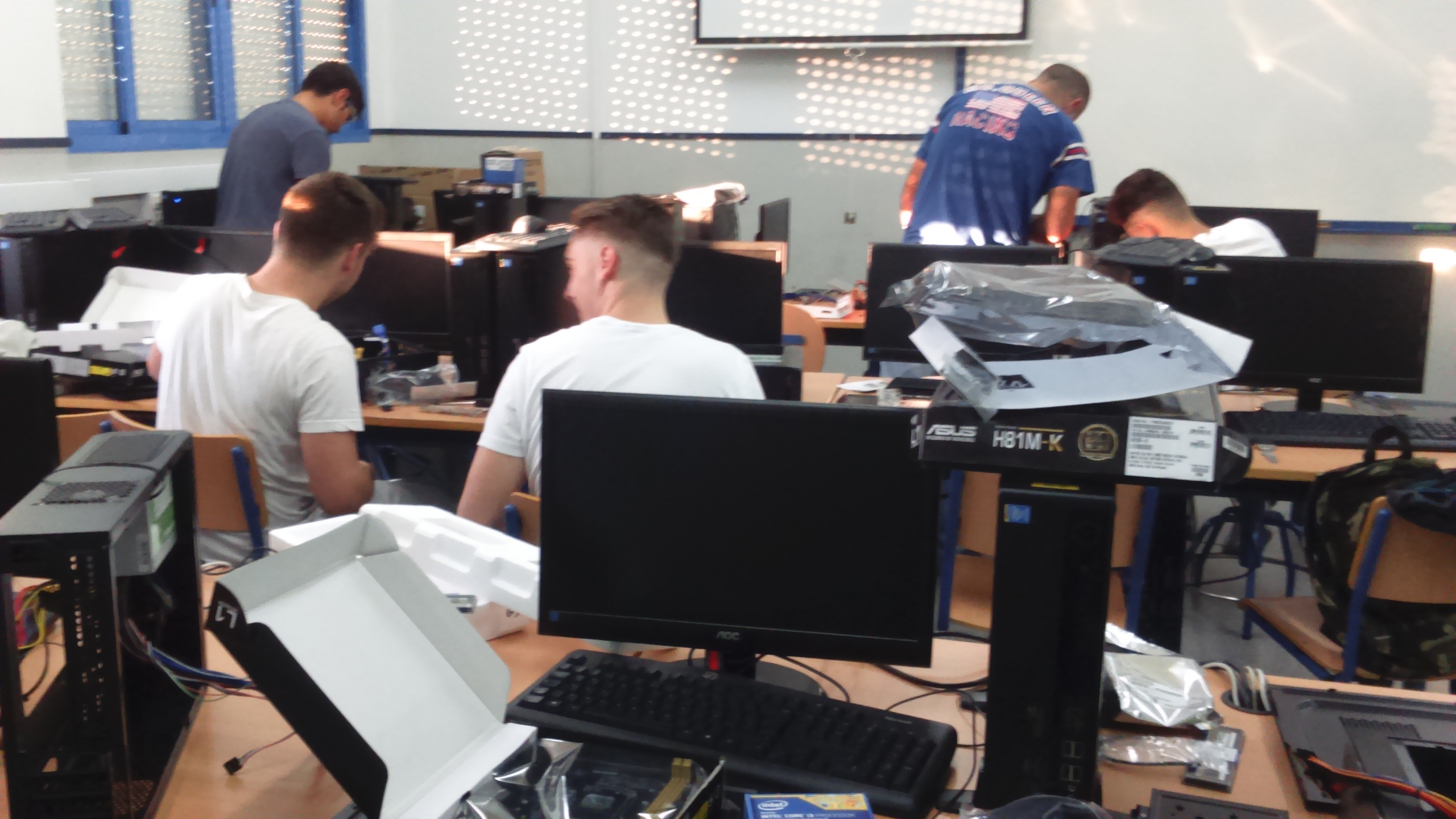 Alumnado del ciclo formativo de grado medio “Sistemas Microinformáticos y en Red” ha procedido al montaje de nuevos equipos informáticos de un aula TIC del centro y bajo la supervisión del profesorado del departamento de informática.