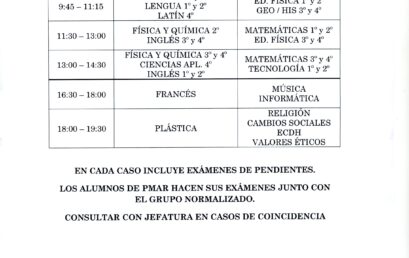 RECOGIDA DE LIBROS ALUMNOS CON MATERIAS PENDIENTES: Día 6 a las 10:30 PERIODO DE MATRICULACIÓN SEPTIEMBRE: Días 6 y 7 Carnets de bachillerato y Ciclo Formativo para alumnos matriculados en septiembre: – Día 12 a las 11:00 en Dirección – Se necesita: Autorización firmada, fotografía, y 1 € Presentación del nuevo curso: día […]
