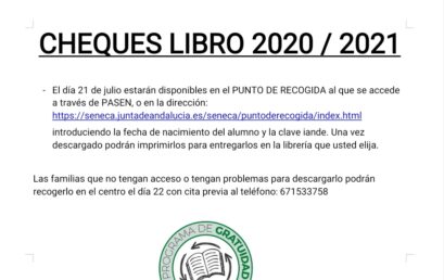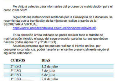 LOS CARNETS DE ESTUDIANTE PARA BACHILLERATO Y CICLOS FORMATIVOS SE GENERARÁN A TRAVÉS DE LA WEB (www.iescastillodeluna.es) Actualmente se está trabajando en ello y el procedimiento estará operativo en la última semana de julio. PASOS A SEGUIR Entrar en la web y rellenar el formulario correspondiente disponible en la columna derecha de la página de […]