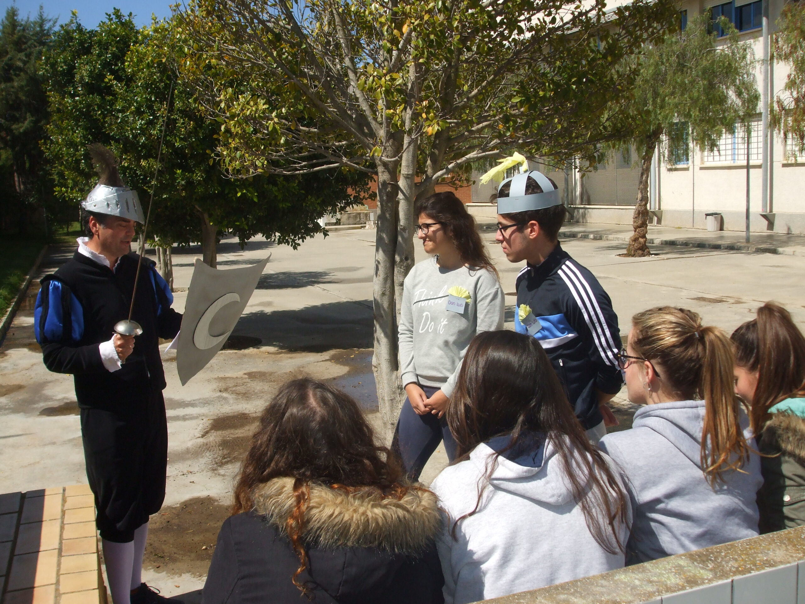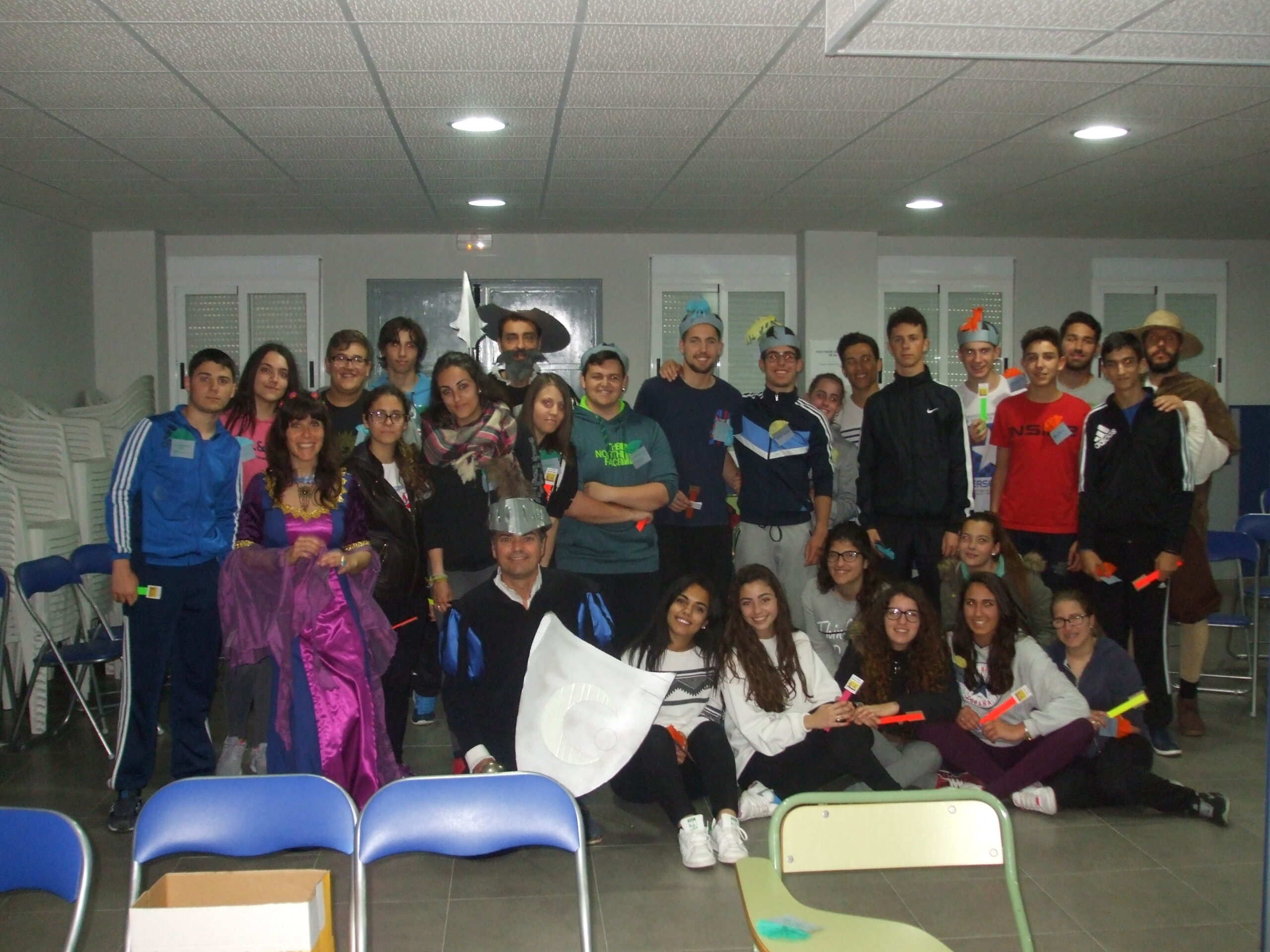 En esta divertida gymkhana, preparada por nuestra compañera Rosa Gallego, participaron los alumnos/as de 1º de bachillerato y colaboraron Juan Crespo como El Caballero de la Blanca Luna, Pablo Pérez como Don Quijote, Rosa Gallego como Dulcinea y Lucía Galve como la Duquesa.