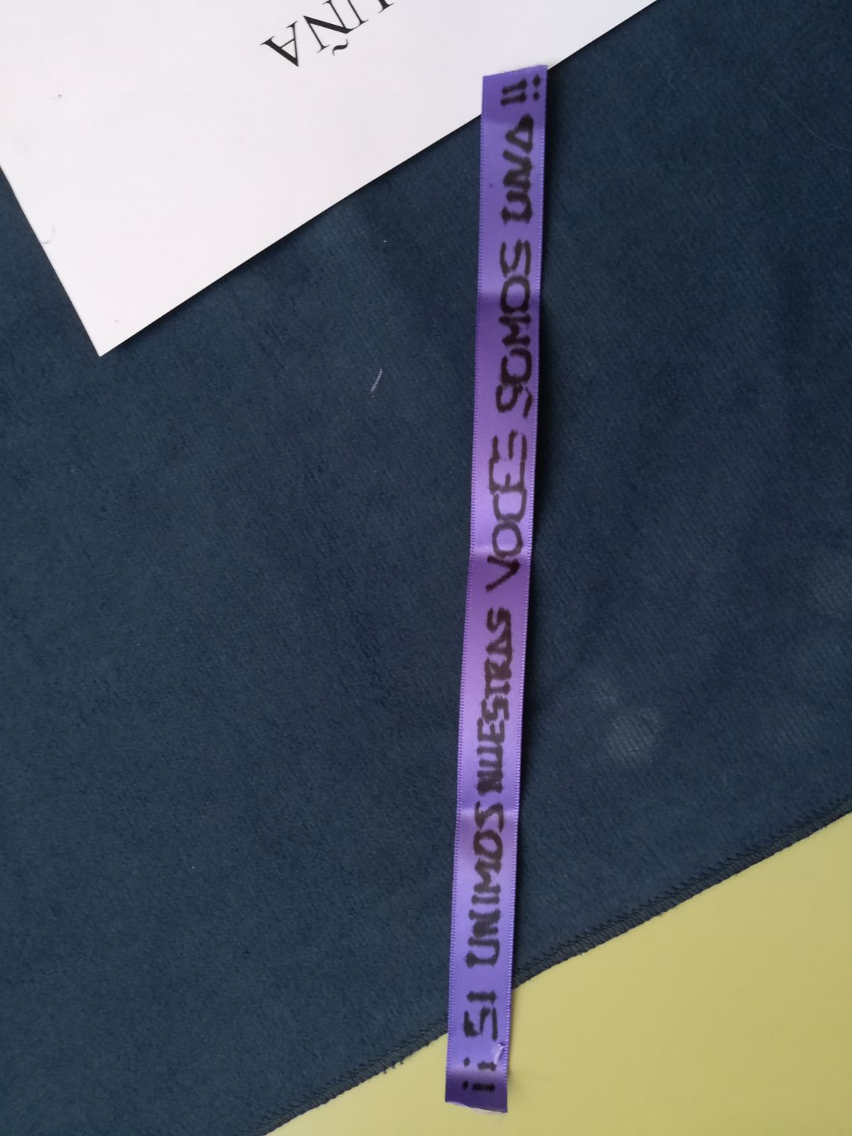 Reparto de pulseras violetas (color reivindicativo) que alumnos/as personalizaron con sus propios mensajes de solidaridad.