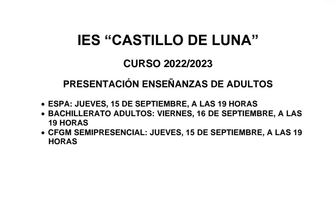 Se informa del horario que se ha establecido para el primer día de clase 15 de septiembre, turno diurno y adultos.